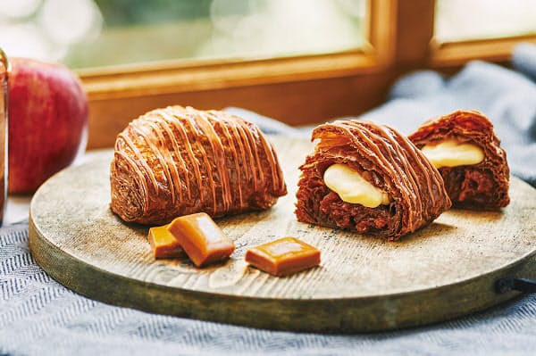 また、サクサク食感のパイ生地にはココアパウダーを練り込み、風味豊かなキャラメル風味のチョコソースを贅沢にトッピング。生地の上からもキャラメルの芳醇な香りを感じていただけます。